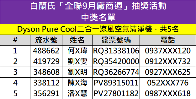 - 活動發票日期需為2021/08/27 00:00~2021/09/30 23:59之發票才能參加抽獎 (活動網站登錄截止日:2021/10/01 23:59止)
