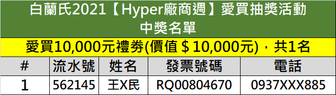 參與本活動之發票不得再參與白蘭氏舉辦之其他行銷贈獎活動。