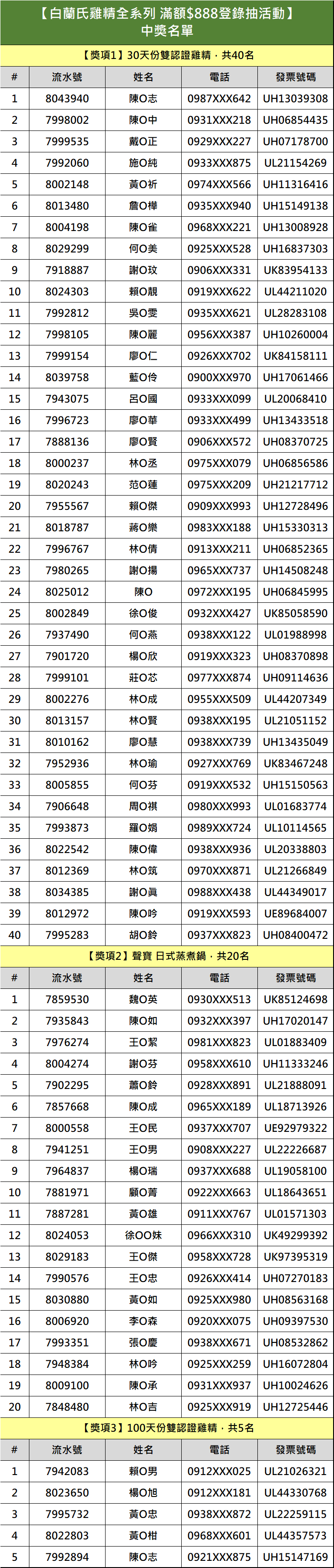 活動期間內購買“白蘭氏雞精全系列商品(不含萃雞精)”單筆發票折扣後滿$888,完成登錄發票流程即可參加抽獎!