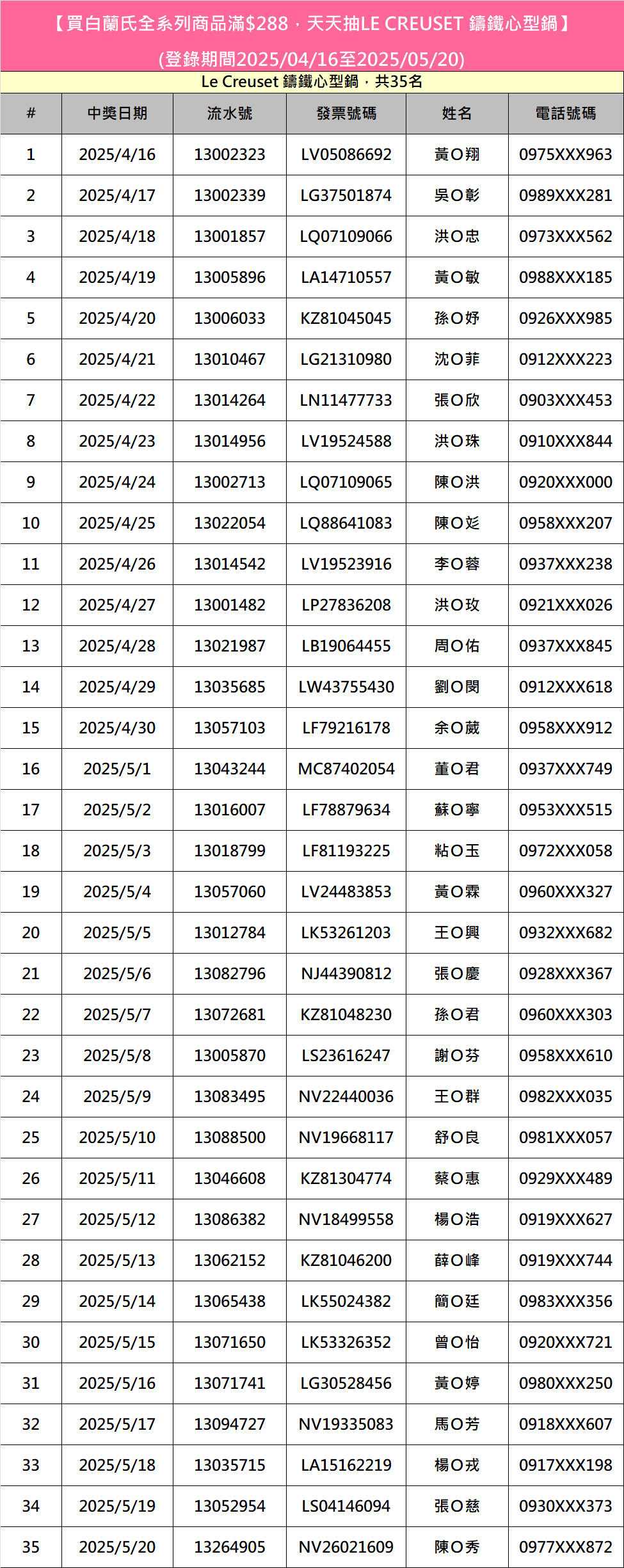 - 本活動自2025/04/17起,每天由電腦系統隨機抽出前一天得獎者(如遇不可抗力之因素導致當日無法抽獎,則順延一個工作日抽獎。)