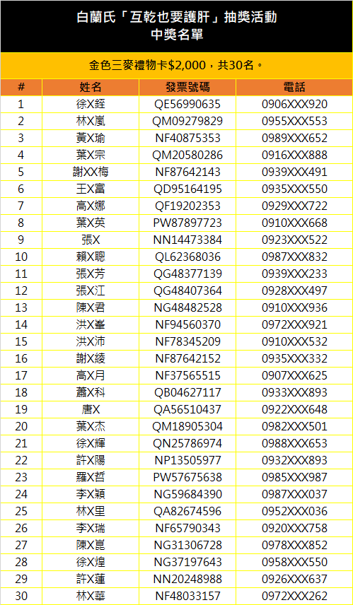 - 參與本活動之發票不得再參與白蘭氏舉辦之其他行銷贈獎活動。